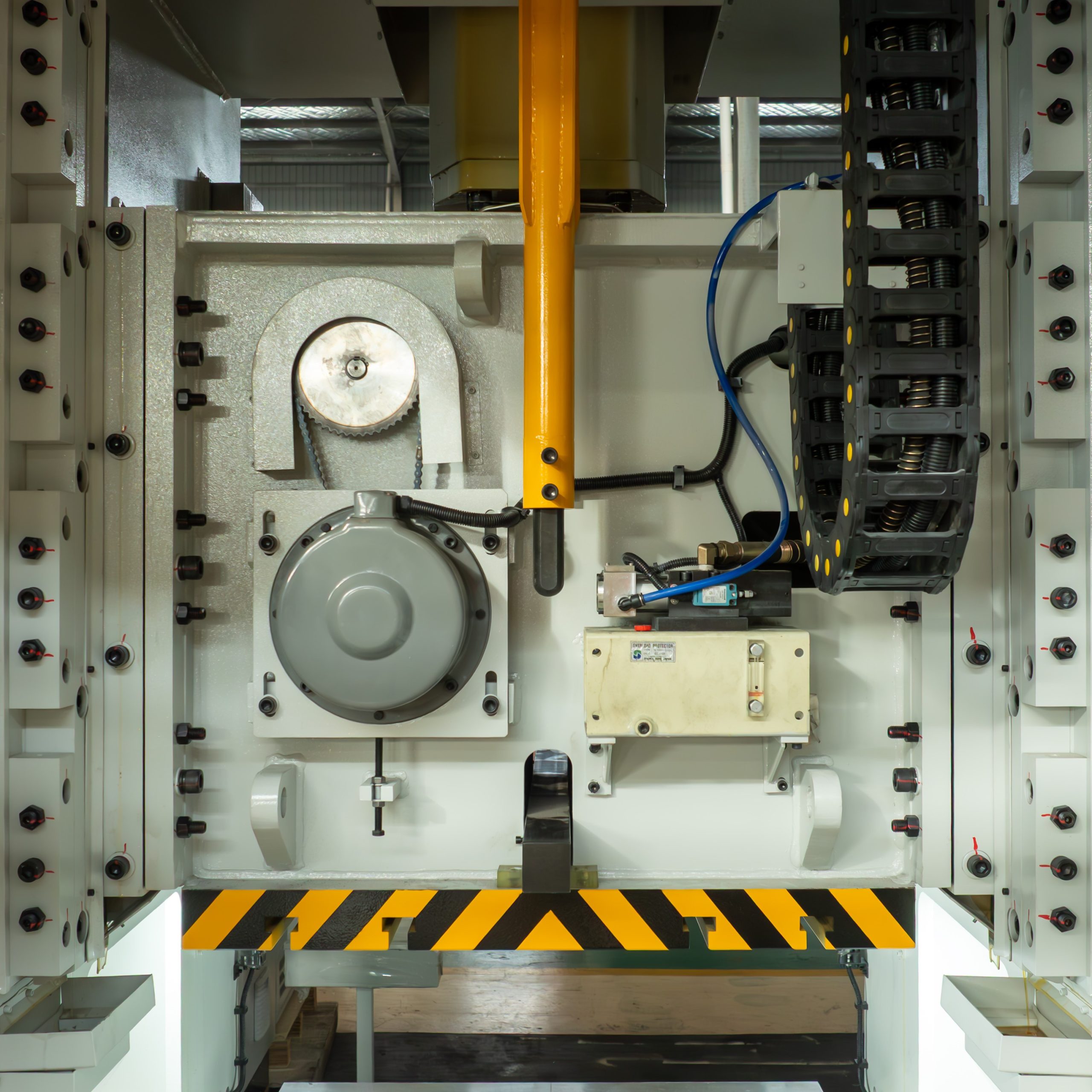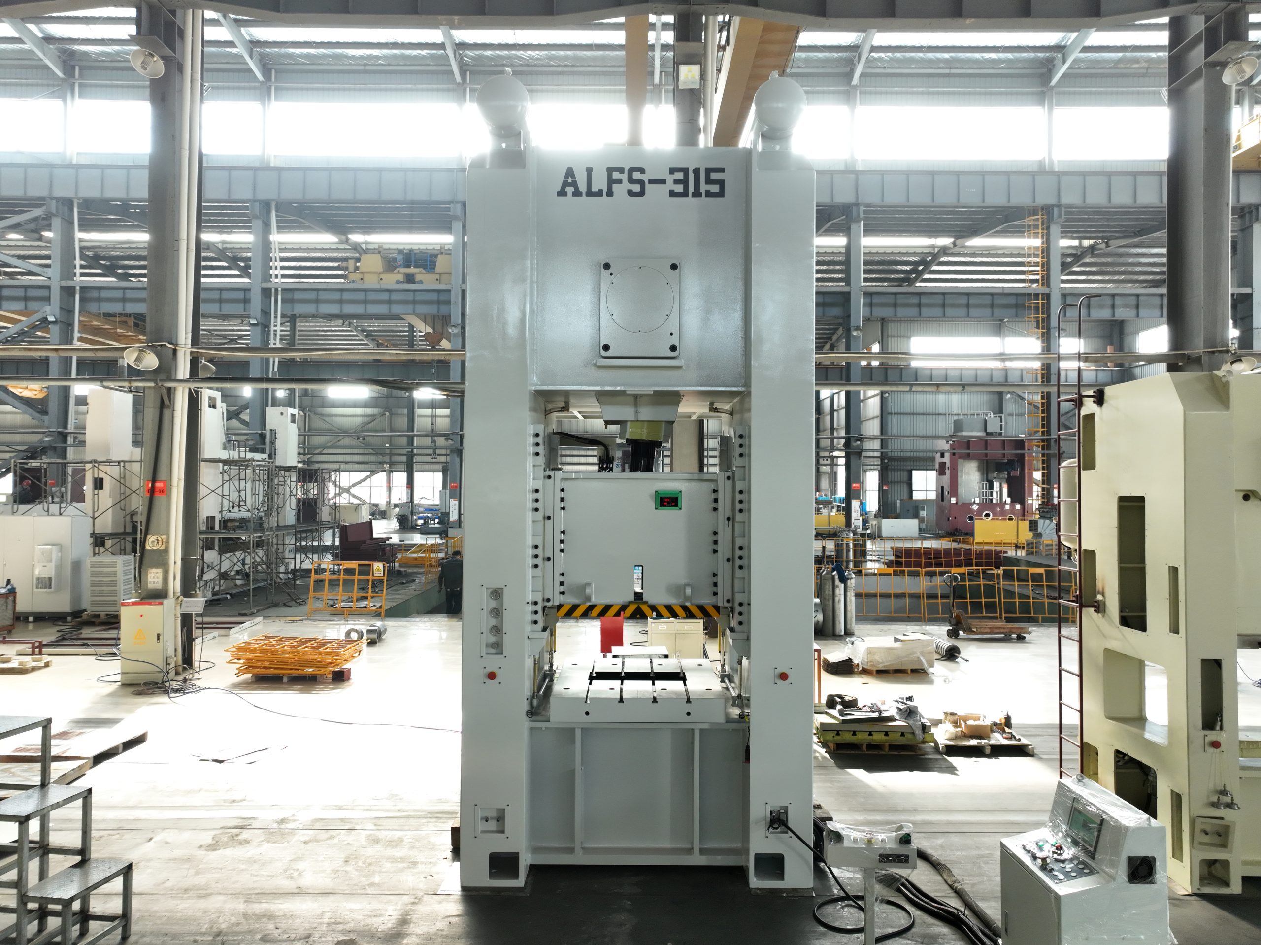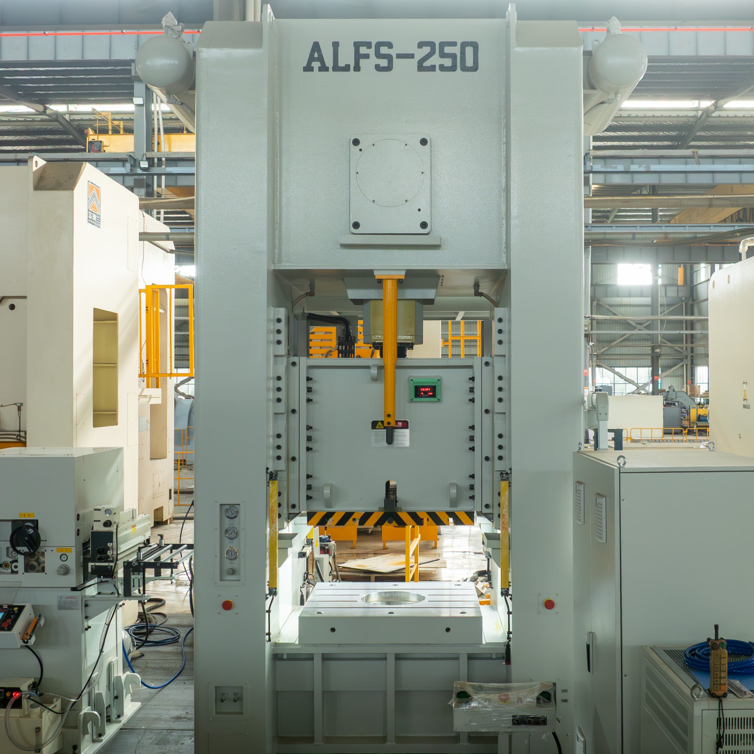 Серия ALF — однокривошипные закрытые прессы с прямостоечной рамой, рассчитанные на жёсткие режимы холодной штамповки. Цельная закрытая станина обеспечивает повышенную жёсткость и минимальную угловую деформацию под нагрузкой — ключевое преимущество при работе с крупными штампами и тяжёлыми операциями.
